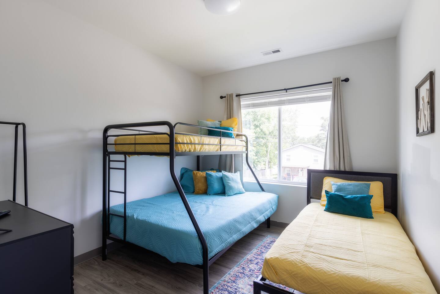 8 Bedrooms: -> 2- Twin Bunk Rooms (3 beds in each, 6 beds total (5 twin, one queen)) -> 4- Queen rooms ( 4 beds total) -> 2- Twin Rooms (2 beds in each, 4 beds total) Each unit has 2 full baths, 2 kitchens and 2 living areas! DISCLAIMER: -Additional guests outside of your confirmed guest count are not allowed on our property + go against your rental agreement. -We have a zero tolerance policy on our property being used for ANY kind of loud gathering or party. We have cameras + security. Per your rental agreement this is grounds for eviction without question or refund + possible legal action. -Upon confirming your booking, you are subject to our House Rules, Rental Agreement which you sign and/or enter it upon checking in, which includes this disclaimer + much more. *NO LOCALS ALLOWED TO BOOK ANY OF OUR PROPERTIES, YOU WILL BE CANCELLED*