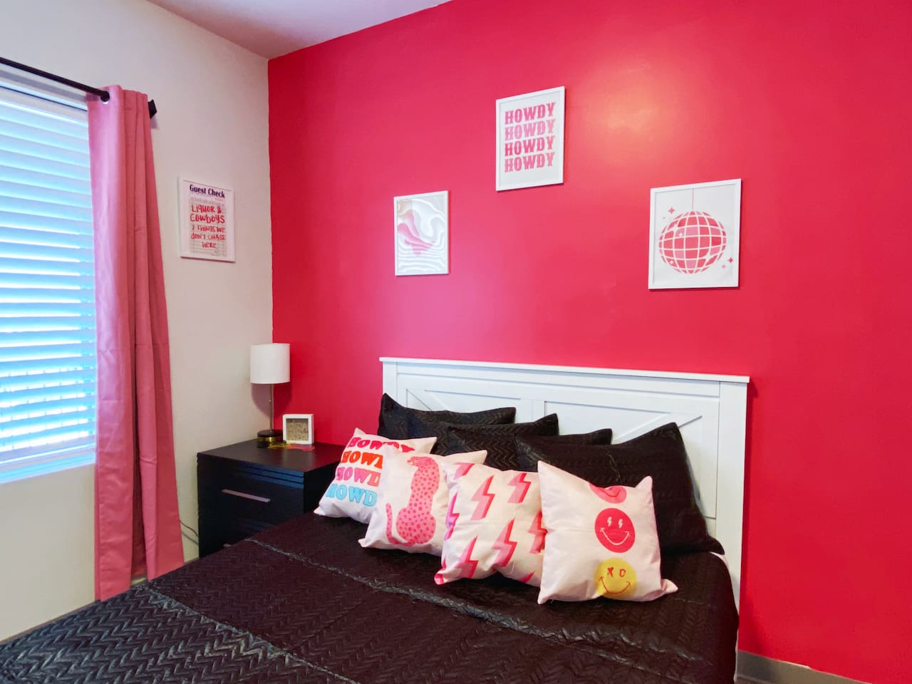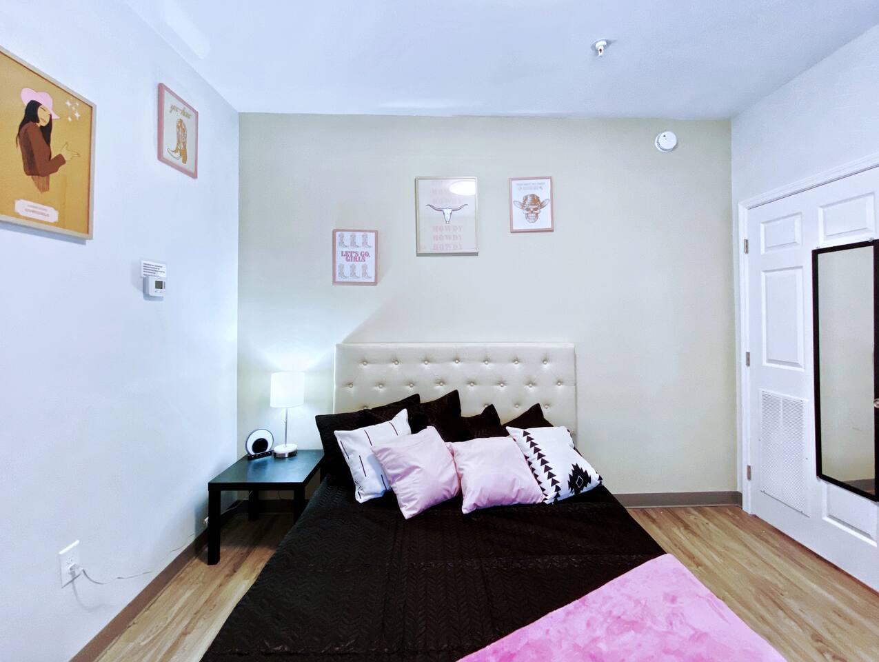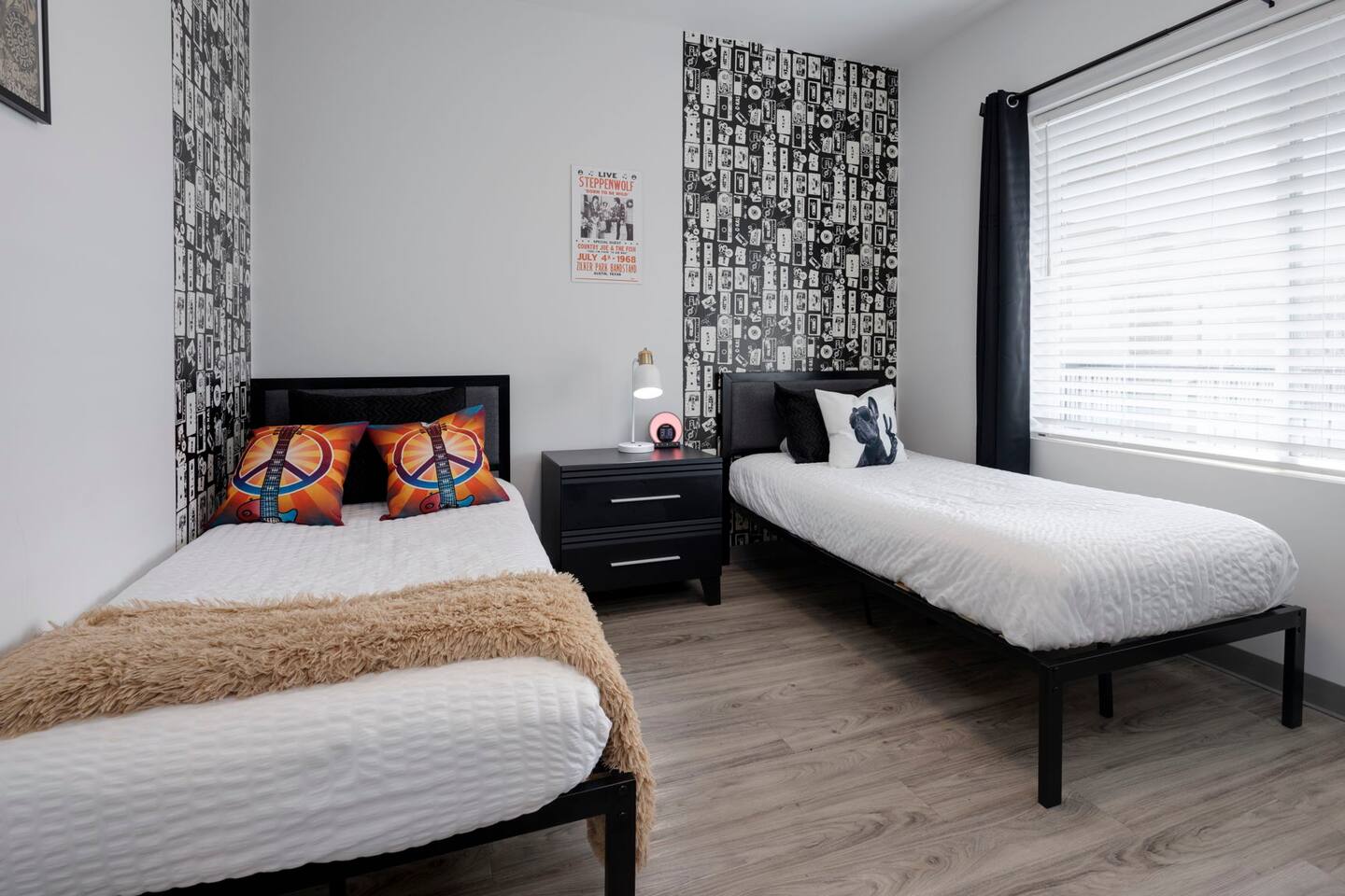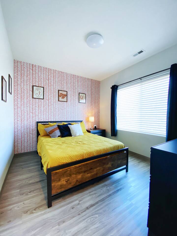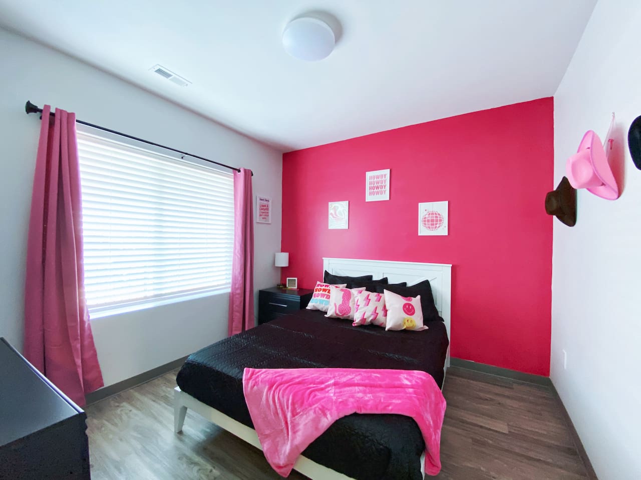 The "Giddy Up" Suite: Giddy Up Cowgirls (and boys)! We love to keep it country. Come take selfies on the saddle, enjoy the vibrant colors + bright space in all 4 rooms! ->Bedroom 1 "Cowboys + Tequila Please" : twin bunk beds | 1 single bunk ->Bedroom 2 "Giddy Up Cowgirl": Queen memory foam bed ->Bedroom 3 "Cowgirl Up" : Queen memory foam bed ->Bedroom 4 "Disco Cowgirl in Pink" : Queen memory foam bed *all bedrooms have smart tvs, alarm clocks (who needs em tho, right??), noise machines for that extra comfortable sleep *living area and select bedrooms have cable tv *kitchenette's have the perfect mini kitchen for your stay including; an oven, stovetop, dishwasher, fridge + most importantly.. a coffee maker:) *both bathrooms are shower only, no tubs *linens, towels, its all provided <-this is a THIRD floor unit, there are stairs-> __________________ The "Hippy Haven" Suite: Woodstock meets Hippy and makes a haven for you to relax + enjoy in! ->Bedroom 1 - " Tye Dyed in Peace": 1 twin bunk bed, 1 queen bunk | 1 single bunk ->Bedroom 2 - "Jimi" : Queen memory foam bed ->Bedroom 3 - "Janis Joplin" : Queen memory foam bed ->Bedroom 4 - "Woodstock Icons" : 2 twin beds *all bedrooms have smart tvs, alarm clocks (who needs em tho, right??), noise machines for that extra comfortable sleep *living area and select bedrooms have cable tv *kitchenette's have the perfect mini kitchen for your stay including; an oven, stovetop, dishwasher, fridge + most importantly.. a coffee maker:) *both bathrooms are shower only, no tubs *linens, towels, its all provided <-this is a THIRD floor unit, there are stairs->