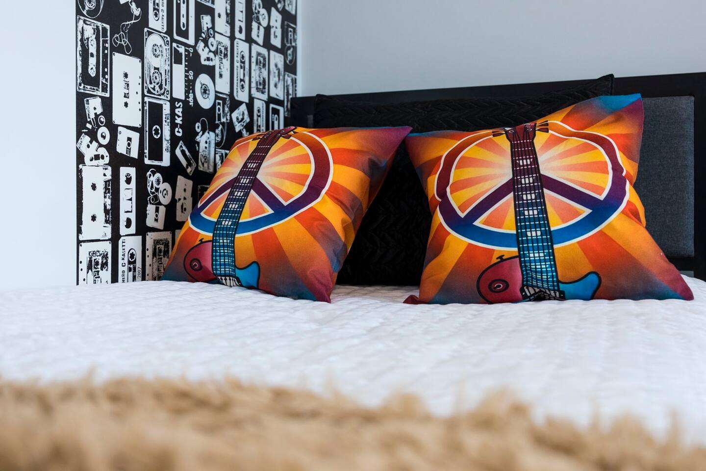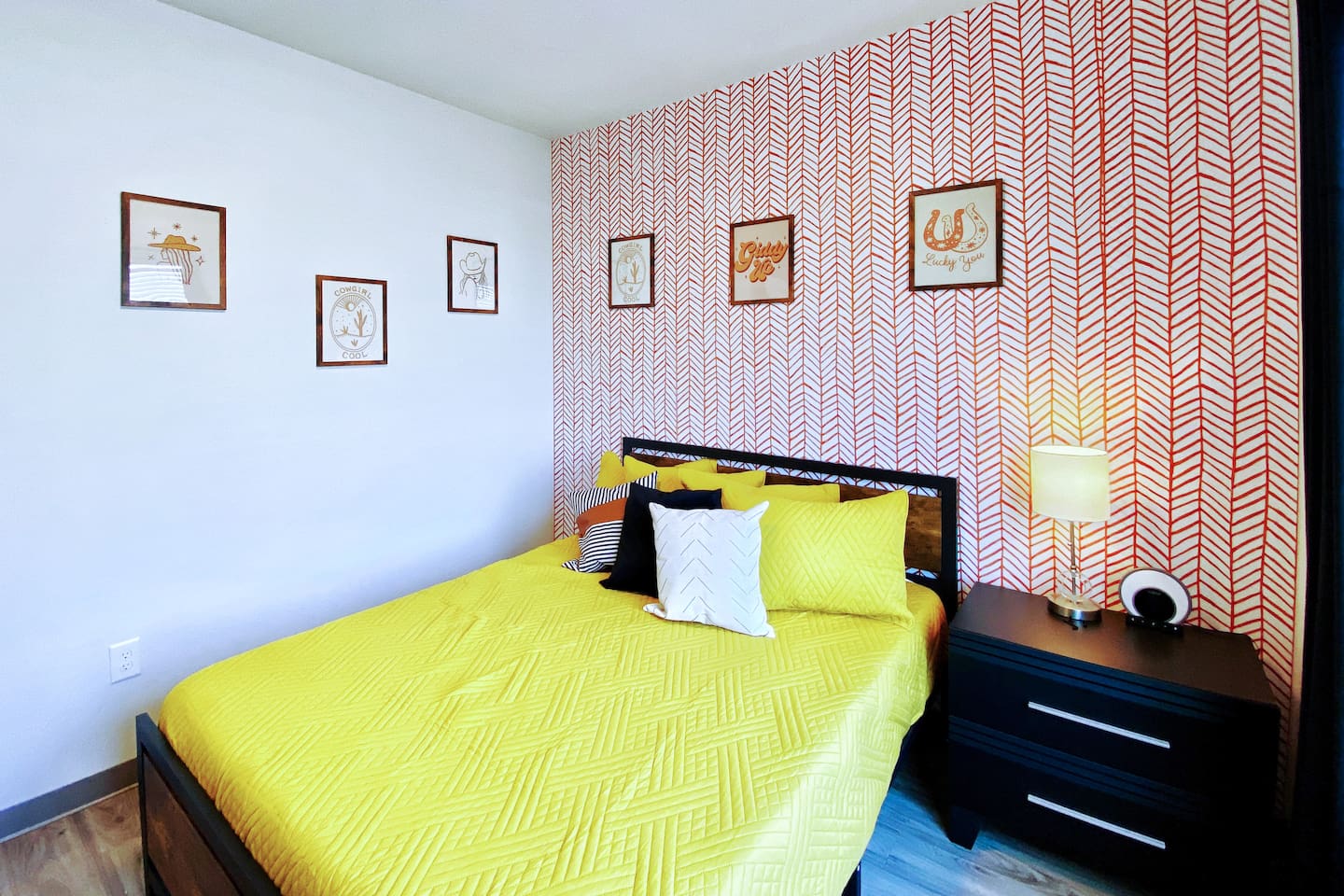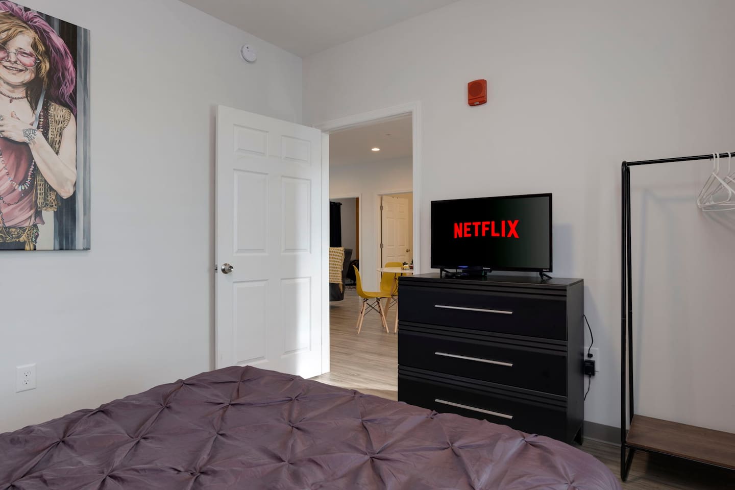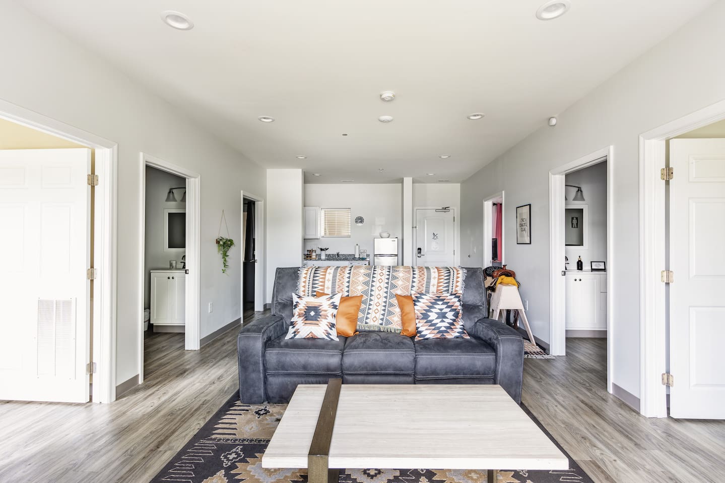 The "Giddy Up" Suite: Giddy Up Cowgirls (and boys)! We love to keep it country. Come take selfies on the saddle, enjoy the vibrant colors + bright space in all 4 rooms! ->Bedroom 1 "Cowboys + Tequila Please" : twin bunk beds | 1 single bunk ->Bedroom 2 "Giddy Up Cowgirl": Queen memory foam bed ->Bedroom 3 "Cowgirl Up" : Queen memory foam bed ->Bedroom 4 "Disco Cowgirl in Pink" : Queen memory foam bed *all bedrooms have smart tvs, alarm clocks (who needs em tho, right??), noise machines for that extra comfortable sleep *living area and select bedrooms have cable tv *kitchenette's have the perfect mini kitchen for your stay including; an oven, stovetop, dishwasher, fridge + most importantly.. a coffee maker:) *both bathrooms are shower only, no tubs *linens, towels, its all provided <-this is a THIRD floor unit, there are stairs-> __________________ The "Hippy Haven" Suite: Woodstock meets Hippy and makes a haven for you to relax + enjoy in! ->Bedroom 1 - " Tye Dyed in Peace": 1 twin bunk bed, 1 queen bunk | 1 single bunk ->Bedroom 2 - "Jimi" : Queen memory foam bed ->Bedroom 3 - "Janis Joplin" : Queen memory foam bed ->Bedroom 4 - "Woodstock Icons" : 2 twin beds *all bedrooms have smart tvs, alarm clocks (who needs em tho, right??), noise machines for that extra comfortable sleep *living area and select bedrooms have cable tv *kitchenette's have the perfect mini kitchen for your stay including; an oven, stovetop, dishwasher, fridge + most importantly.. a coffee maker:) *both bathrooms are shower only, no tubs *linens, towels, its all provided <-this is a THIRD floor unit, there are stairs->