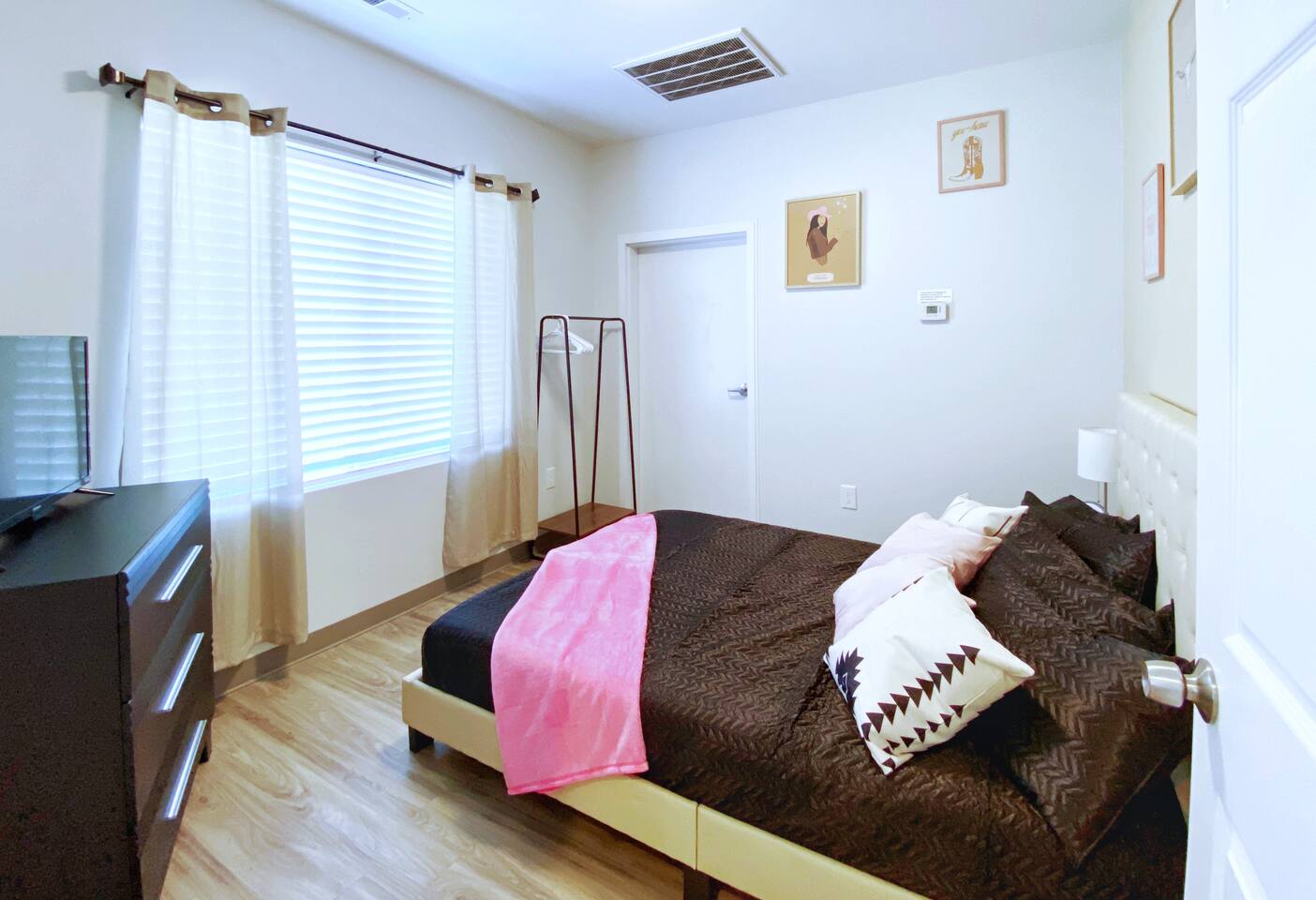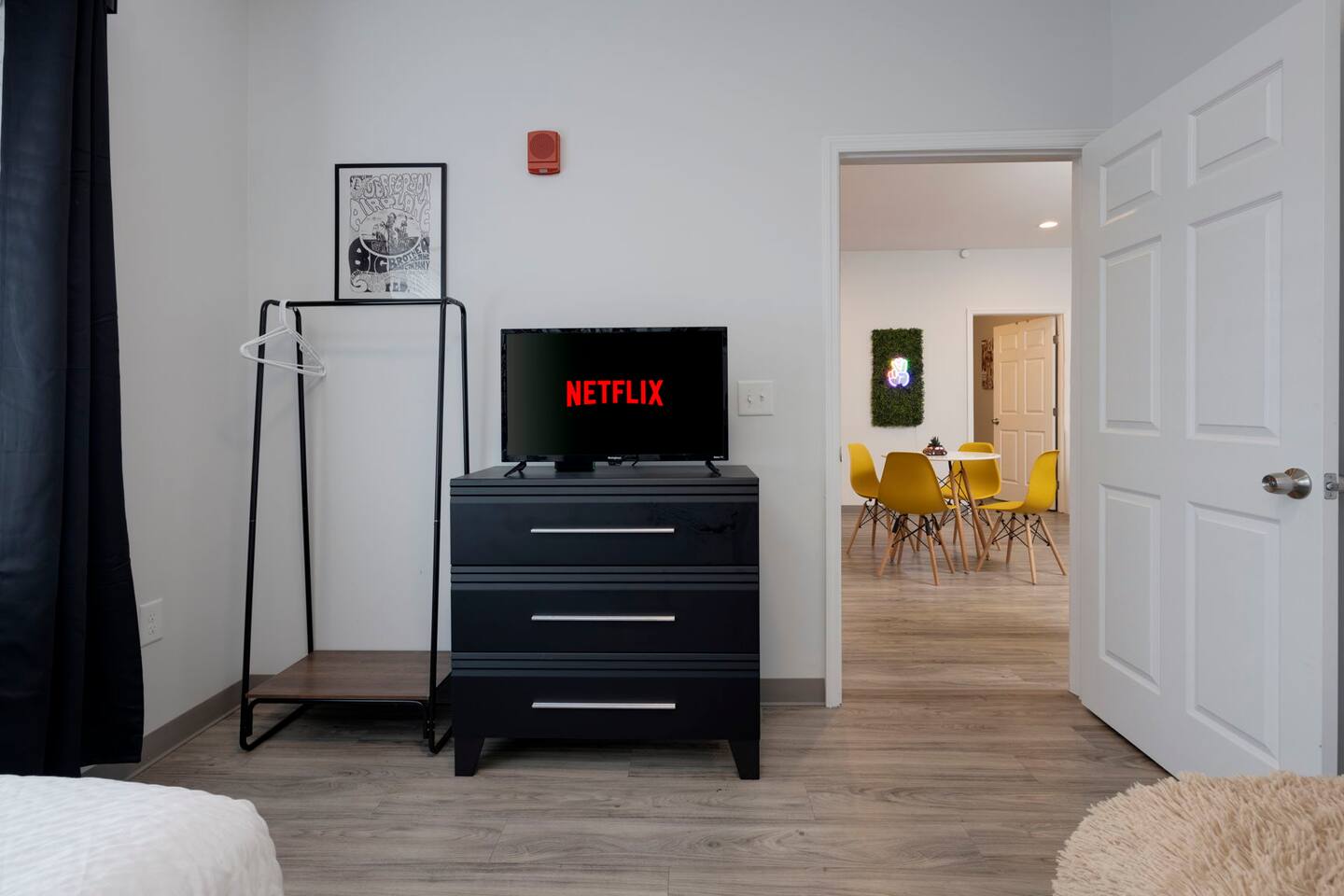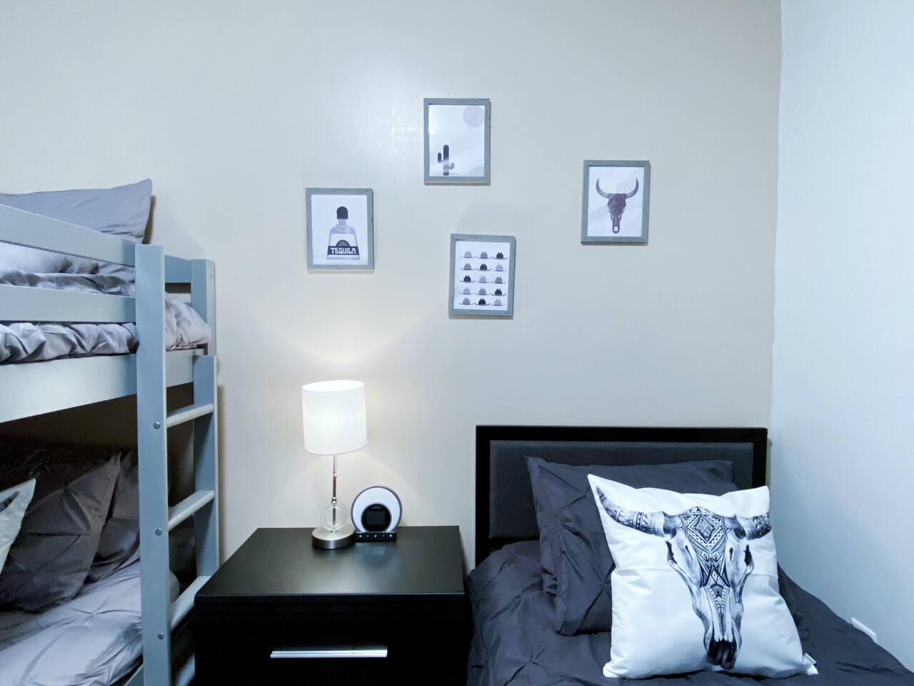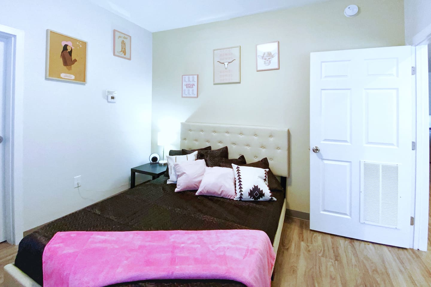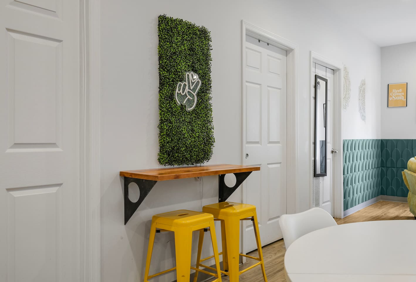 The "Giddy Up" Suite: Giddy Up Cowgirls (and boys)! We love to keep it country. Come take selfies on the saddle, enjoy the vibrant colors + bright space in all 4 rooms! ->Bedroom 1 "Cowboys + Tequila Please" : twin bunk beds | 1 single bunk ->Bedroom 2 "Giddy Up Cowgirl": Queen memory foam bed ->Bedroom 3 "Cowgirl Up" : Queen memory foam bed ->Bedroom 4 "Disco Cowgirl in Pink" : Queen memory foam bed *all bedrooms have smart tvs, alarm clocks (who needs em tho, right??), noise machines for that extra comfortable sleep *living area and select bedrooms have cable tv *kitchenette's have the perfect mini kitchen for your stay including; an oven, stovetop, dishwasher, fridge + most importantly.. a coffee maker:) *both bathrooms are shower only, no tubs *linens, towels, its all provided <-this is a THIRD floor unit, there are stairs-> __________________ The "Hippy Haven" Suite: Woodstock meets Hippy and makes a haven for you to relax + enjoy in! ->Bedroom 1 - " Tye Dyed in Peace": 1 twin bunk bed, 1 queen bunk | 1 single bunk ->Bedroom 2 - "Jimi" : Queen memory foam bed ->Bedroom 3 - "Janis Joplin" : Queen memory foam bed ->Bedroom 4 - "Woodstock Icons" : 2 twin beds *all bedrooms have smart tvs, alarm clocks (who needs em tho, right??), noise machines for that extra comfortable sleep *living area and select bedrooms have cable tv *kitchenette's have the perfect mini kitchen for your stay including; an oven, stovetop, dishwasher, fridge + most importantly.. a coffee maker:) *both bathrooms are shower only, no tubs *linens, towels, its all provided <-this is a THIRD floor unit, there are stairs->