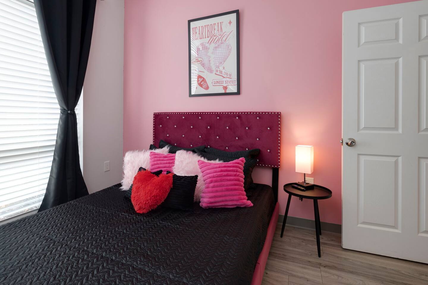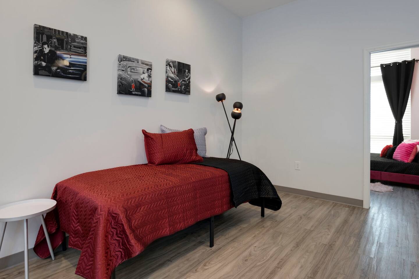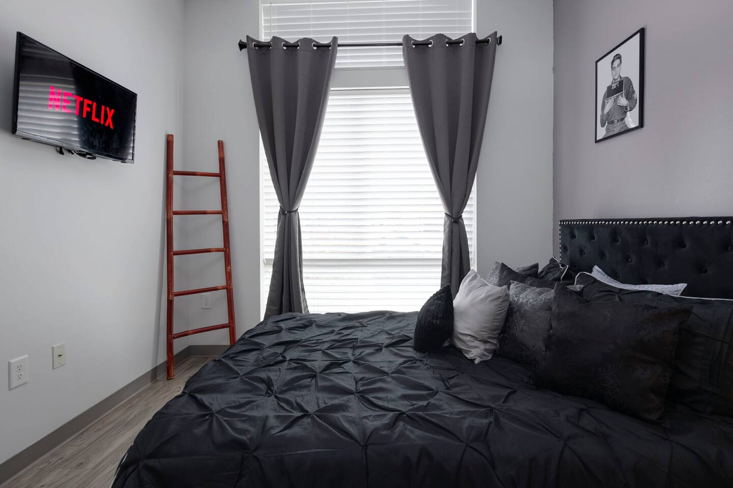 The Elvis Suite: The Elvis theme will have you wanting to get those blue suede shoes out! ->Bedroom 1 - "The Heartbreak Hotel" : Queen memory foam bed, room darkening shades + smart tv ->Bedroom 2 - "Jailhouse Rock": Queen memory foam bed, room darkening shades + smart tv ->Living Area : twin bed | queen air mattress 13 inch + smart tv ->Kitchenette w/ all the basics + hightop dining for 4 *kitchenette's have the perfect mini kitchen for your stay including; an oven, stovetop, dishwasher, fridge + most importantly.. a coffee maker:)