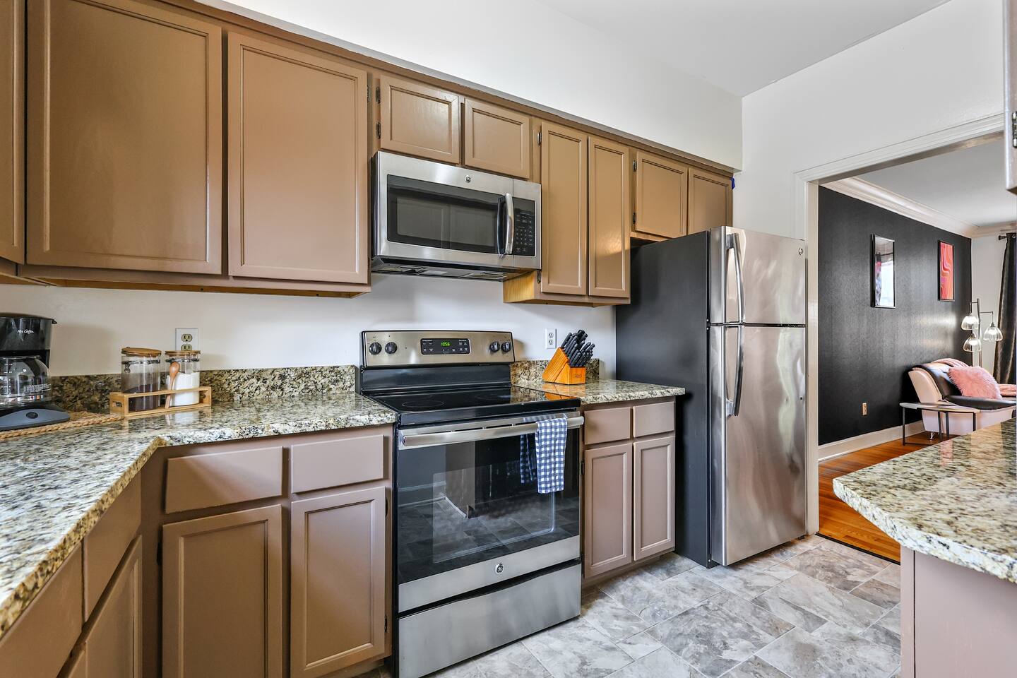-Bedroom Enter your private bedroom furnished with a luxurious queen-sized bed, a smart TV, generous storage options, a closet, and an attached private bathroom, ensuring a comfortable and convenient experience during your stay. Bedrooms 1 & 2: Queen Bed, en-suite Bathroom, and Clothing Storage -Bathroom Indulge in ultimate revitalization in our distinctive and elegantly crafted bathroom. Pamper yourself in style during your stay with us in our two full bathrooms and a half bathroom with essential toiletries. -Kitchen Discover a fully-equipped kitchen + 4 top dining tables where deliciously prepared meals come to life. From sleek stainless steel appliances to premium cookware and ample counter space, the kitchen of your dreams ensures you can effortlessly whip up delicious meals. -Attractions *Beautiful townhome in the iconic West End area! *So close to everything. *The highways are 1 minute away. *Enjoy the shopping, cafes, and eating West End offers. *Check out the Parthenon. *6 minutes to downtown. *4 minutes to midtown. We cover your basics for the next Nash stay! *please note these townhomes are built in the 80's, they are not brand new and have their 80's character throughout!