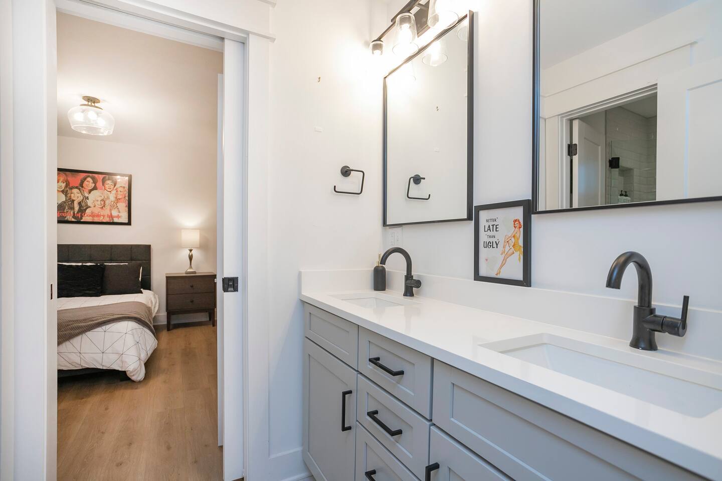 Our "Dolly Parton + Iconic Women of Country" boutique unit has the space, supplies +vibe you're craving for your visit to Music City! We love girls trips + even have a selfie wall for yall! *Make your stay as free flowing as the commute to downtown, 1.1 miles away! Or enjoy the view dt from your rooftop patio! ***Find us online to book! Stay Wandering Nash Edition