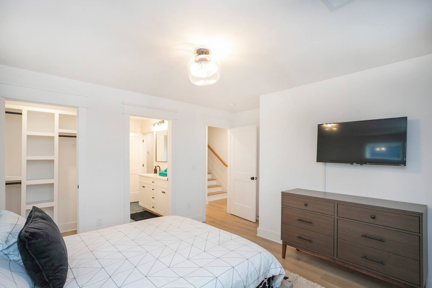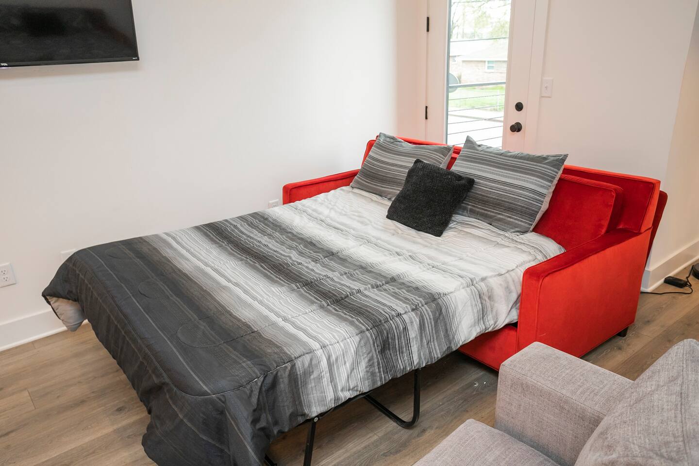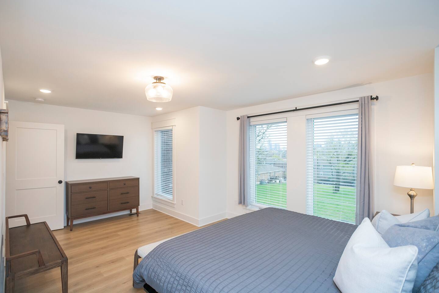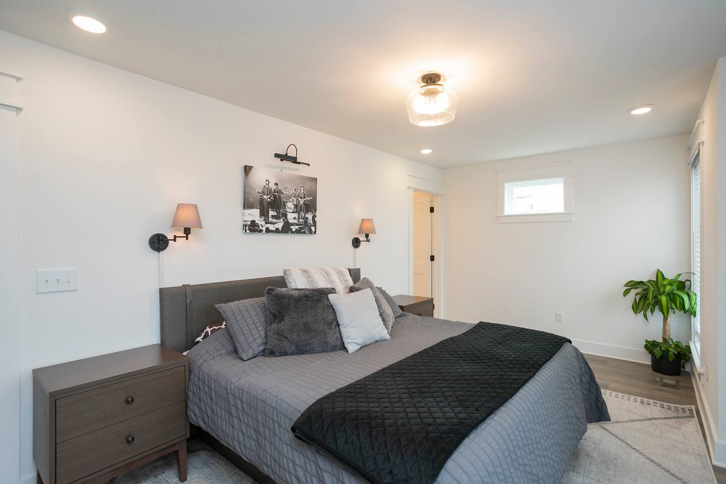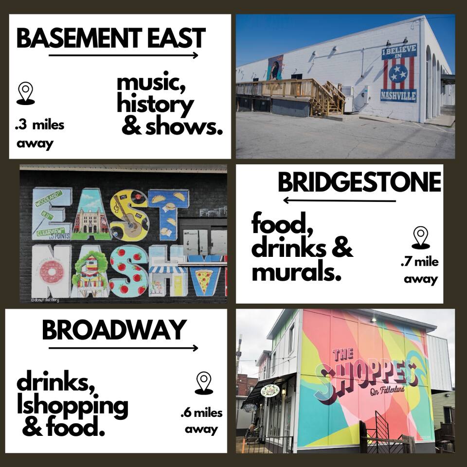 "Rock + Roll Haven" Rock + Roll Haven: 1st Floor: ->"the Bowie" Queen bed + Roku TV ->Shared bath (shower only) ->"the Hendrix" Queen Bed 2nd Floor: ->Main Living Area w/ 2 fold out queen sleeper sofas ->full kitchen ->6 person dining 3rd Floor: ->"icons of the 90s" Queen bed + ensuite bath ->"the Beatles" Master King bed w/ Roku TV + ensuite bath Rooftop! ->Enjoy the birds eye view to downtown! You can see the city line clearly. ->Cornhole, Ring Toss, Darts to play ------ "The Nash Local" The artwork in the unit is all local artists! We love to support our friends and community. Try the local Nash coffees we have also! ✔️The first floor has two queen bedrooms and one bath. ✔️Take the flight of stairs up to the main quarters and you’ll find a fully equipped chefs kitchen, a six person designer wood table to dine, and an expansive living area. ✔️Take the next flight of stairs up to the third-floor where you will find a queen bedroom with a bathroom, a king master with an en suite bathroom. ✔️Take some selfie‘s or group photos in front of our Nashville selfie wall! ✔️Enjoy the rooftop feels and views as you make your way to the fourth floor. Here you can enjoy a game of cod hole or ring toss!